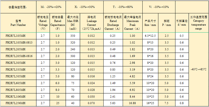 风华超级电容低内阻FH2R7L505M 产品型号:FH5RV 155T 5.5V 1.5F 19*5.0