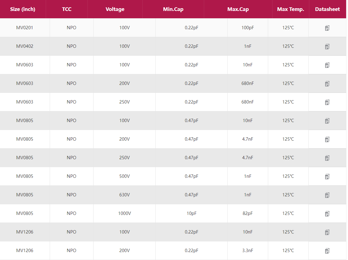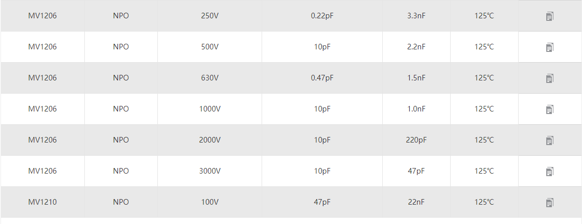 信维中高压电容 产品型号:0201 0402 0603 0805 1206 1210