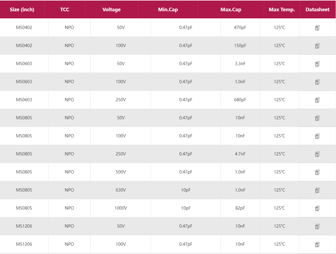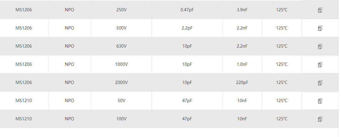 信维软端子电容 产品型号:0201 0402 0603 0805 1206 1210