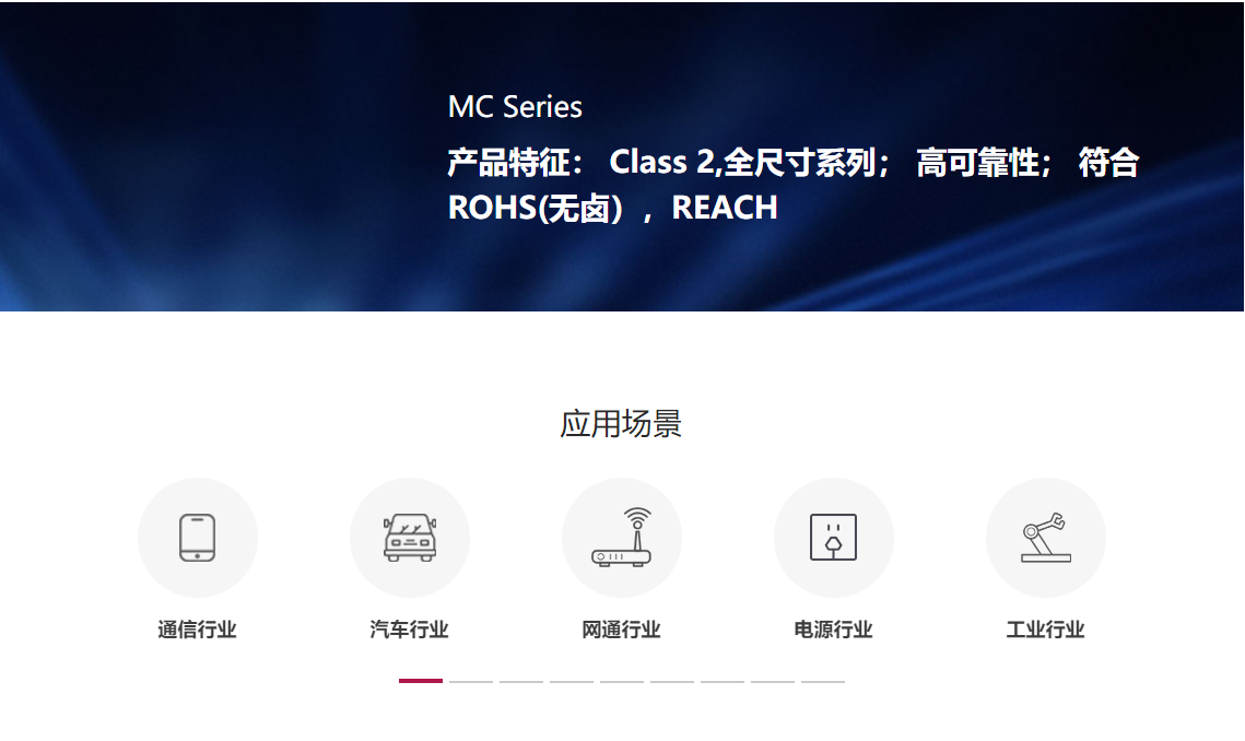 产品特征:Class 2,全尺寸系列; 高可靠性; 符合ROHS(无卤),REACH